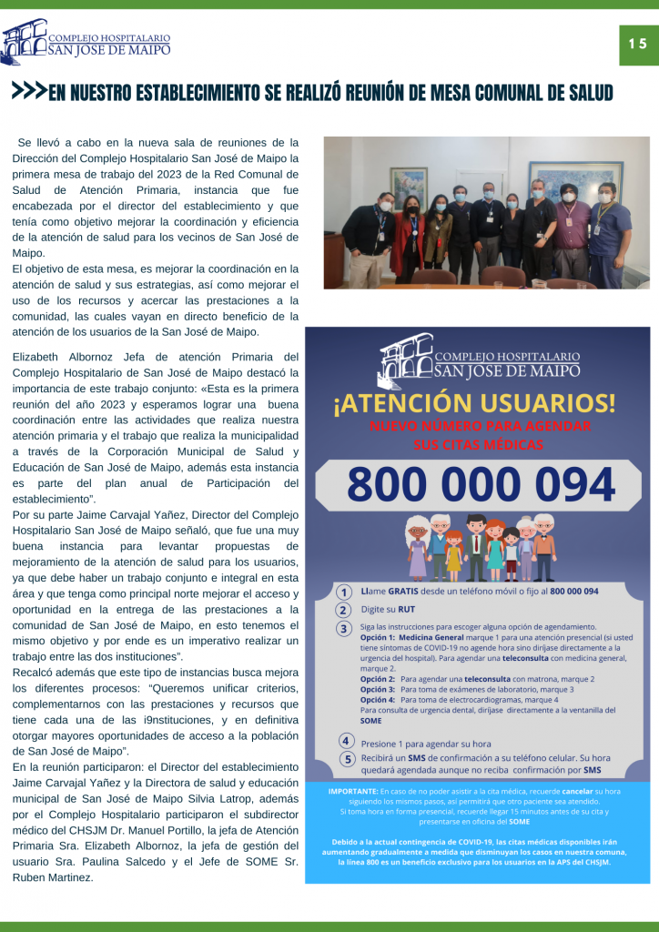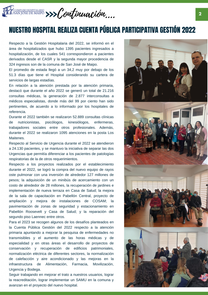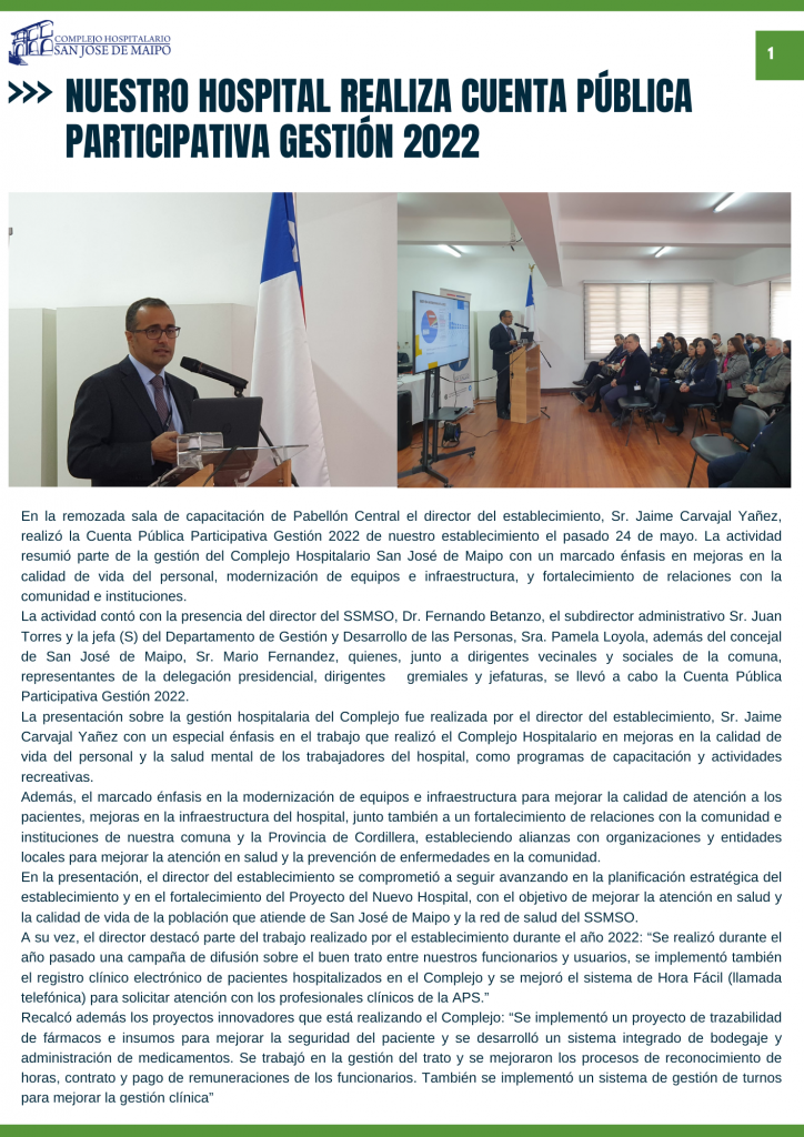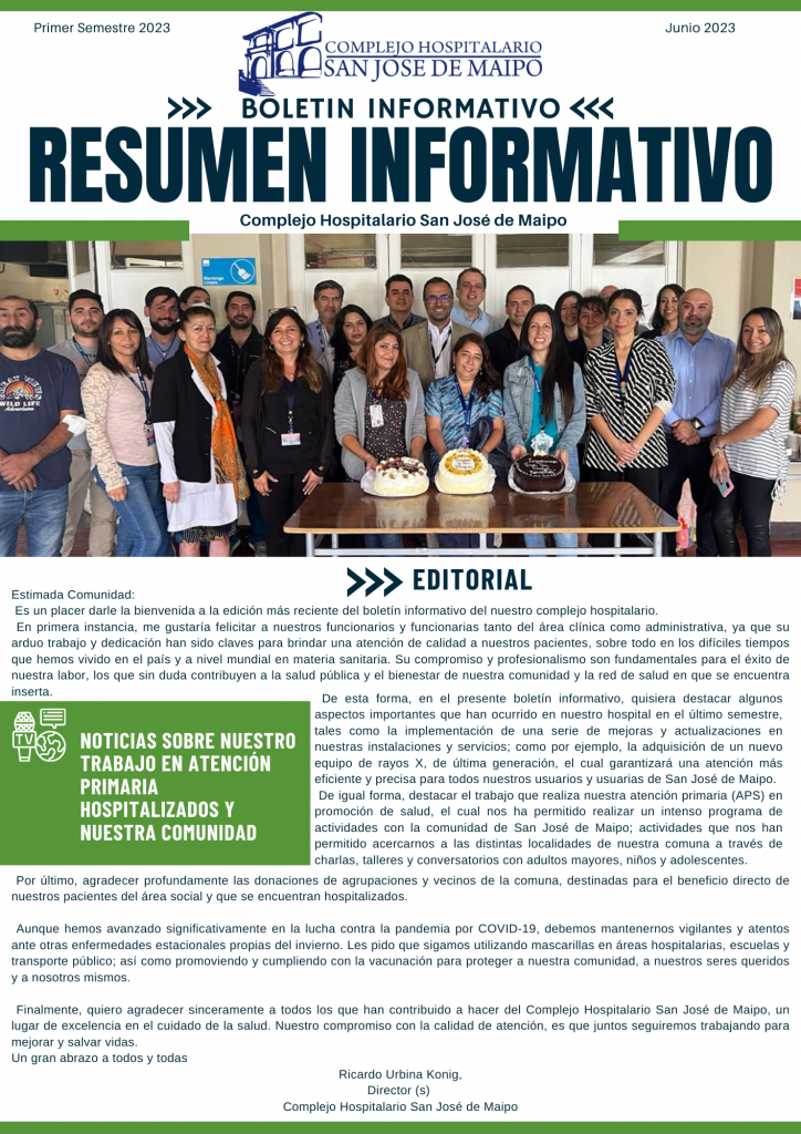Boletín informativo Primer Semestre 2023 Complejo Hospitalario San José de Maipo