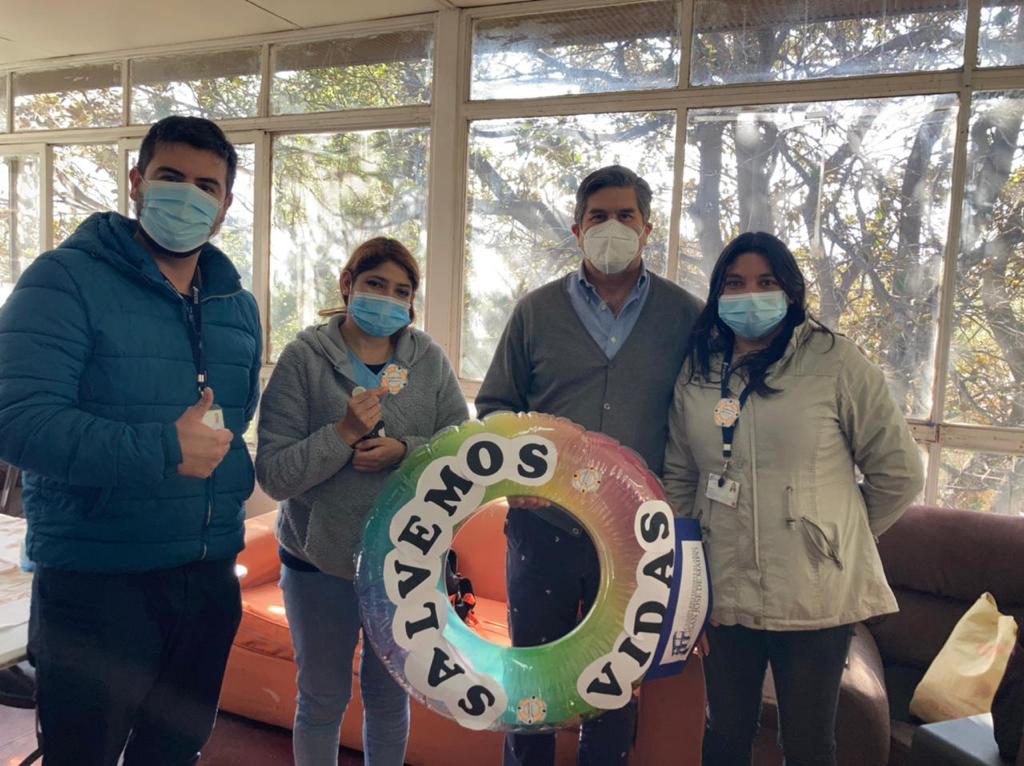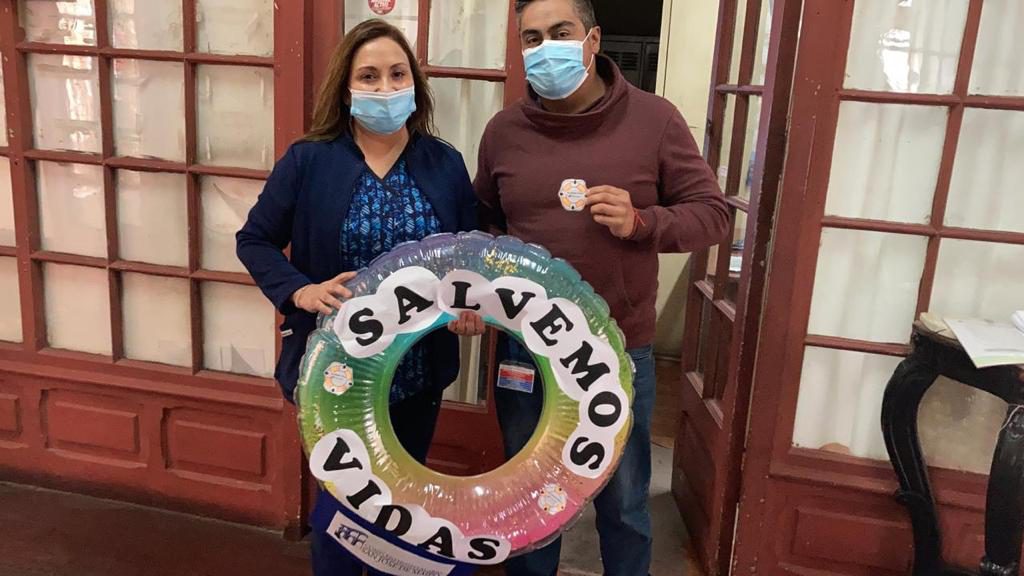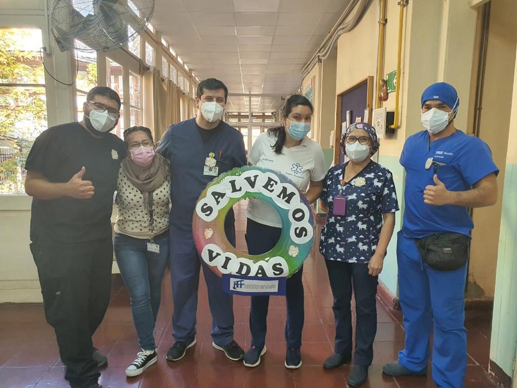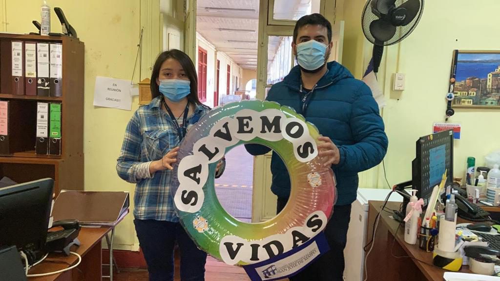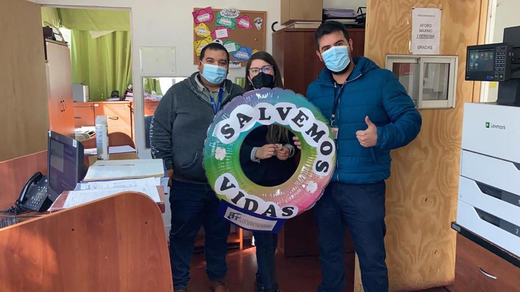 Para eso se trabajó como comité en generar estímulos positivos al personal de nuestro hospital que está constantemente realizando la actividad de higienizar sus manos, teniendo como eslogan la frase “Salvando vidas” se generó una imagen que fue diseñada por el comité y, que a través de la tía Geraldine, nuestra educadora del Centro Escolar, logró darle vida con; un salvavidas de color naranjo. Con ese eslogan durante la semana alusiva al día internacional del lavado de manos, instancia instituida por la Organización Mundial de la Salud (OMS). Esta iniciativa ha tenido muy buena aceptación por todo el personal del complejo.