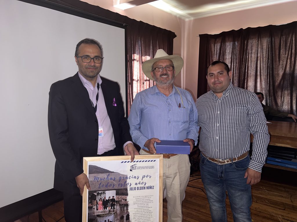 El director del CHSJM Jaime Carvajal Yañez destacó la importante trayectoria y el aporte a la institución por parte de estos funcionarios: “quiero agradecerles por el especial compromiso que tienen con vuestro hospital, sus compañeros de trabajo y también con nuestros pacientes, su dedicación es uno de los principales pilares de nuestro establecimiento, virtud que los más jóvenes deben aprender. Quiero expresarles que ese compromiso nos inspira a seguir adelante y seguir trabajando con el cariño que ustedes también tienen a este establecimiento y que esperamos que sigan vinculados con nuestra institución.”.