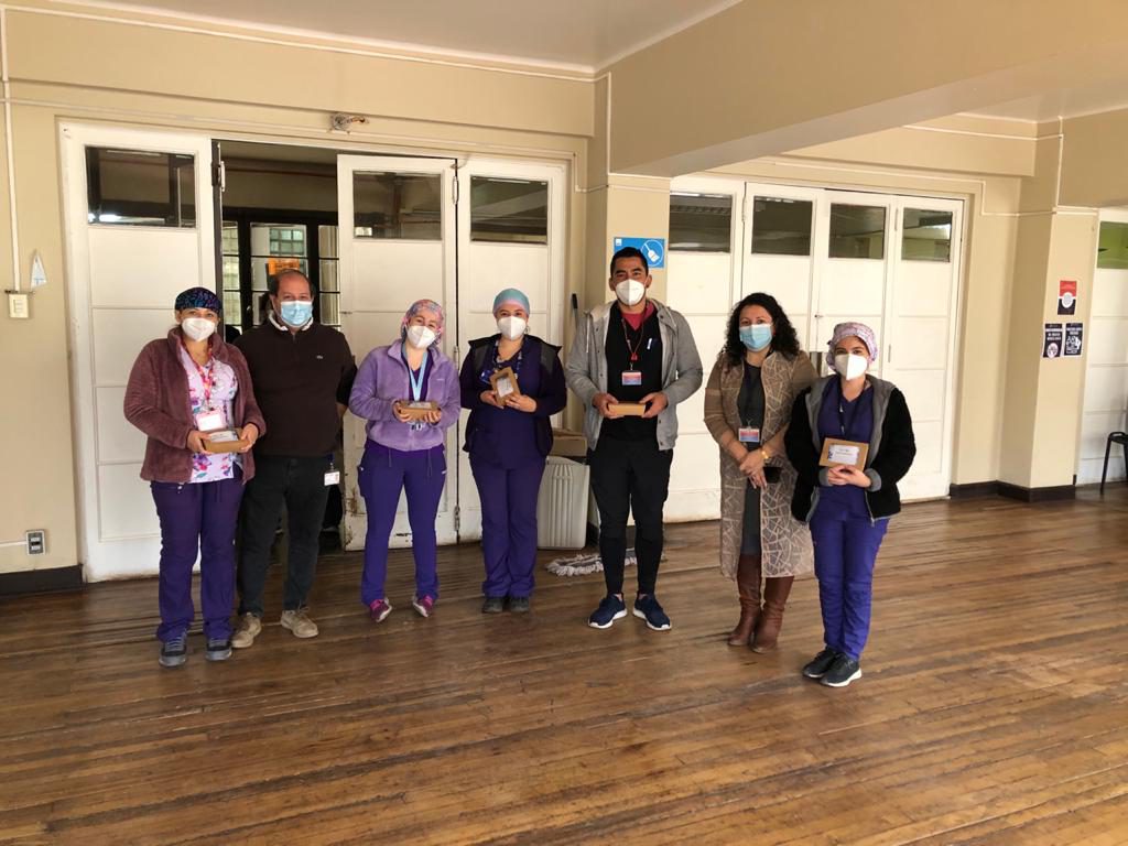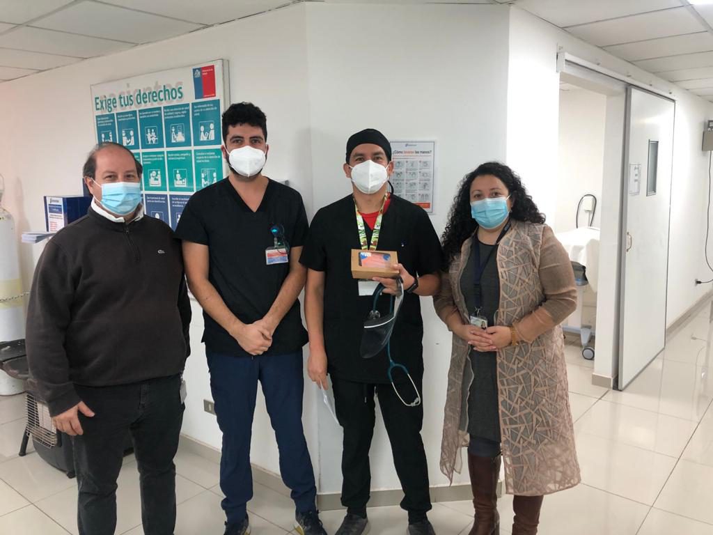 Por eso el día viernes 07 de mayo se generó una actividad que fue encabezada por el Subdirector Administrativo Ricardo Urbina y la Jefa del Departamento de Gestión de las Personas Mabel Alvarado, quienes visitaron los diferentes edificios y sectores del hospital para entregar este especial reconocimiento a todos los funcionarios que se desempeñan en nuestro Complejo.