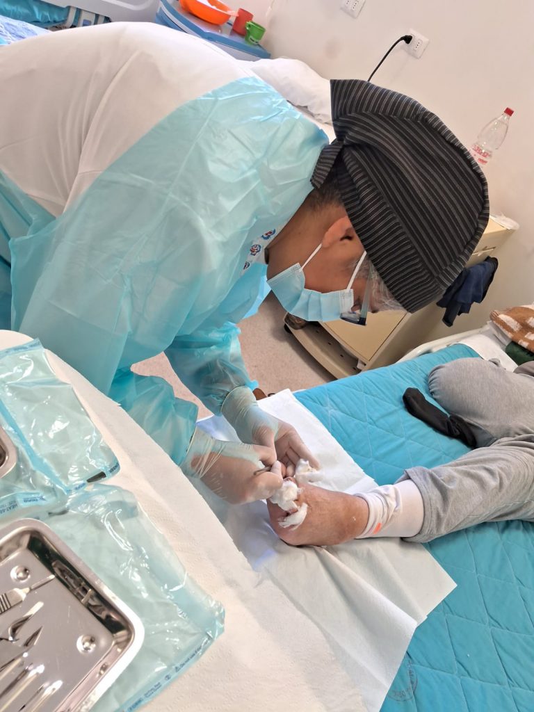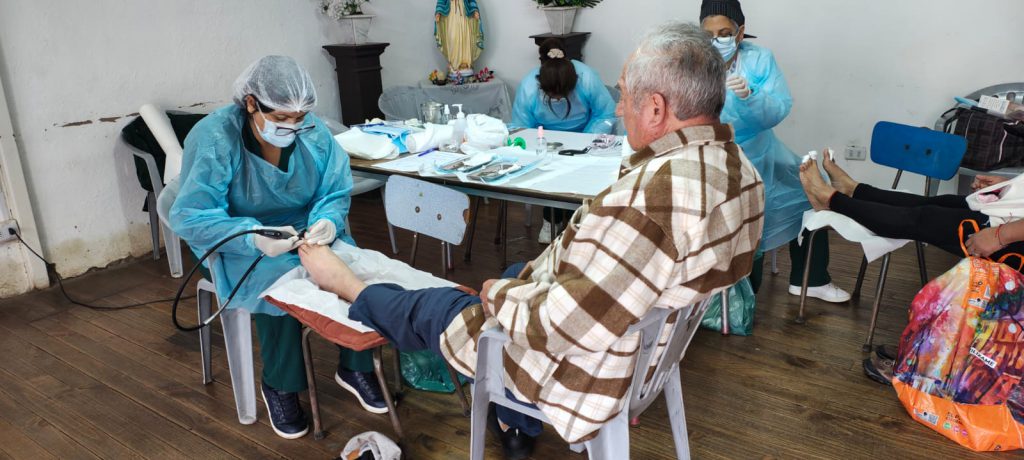 - Atención podológica a pacientes hospitalizados, priorizados por el equipo clínico, en especial en los edificios Casa de Salud y Roosevelt.