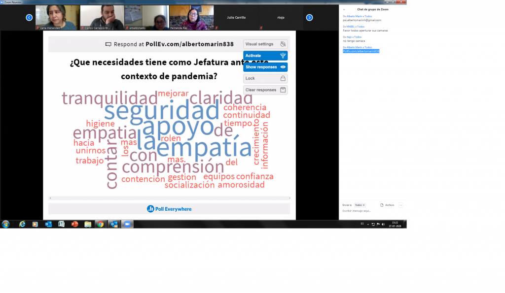 Recalcó también la participación de las jefaturas “Se nota que existe un interés por participar, porque la mayoría, seguimos con harto trabajo pero lo postergamos para darnos este espacio de distensión, que como se señaló en última sesión, de nada serviría si atenuada la pandemia, como así parece, se nos recarga con labores fácilmente postergables y que no son esenciales para el funcionamiento del Hospital, (Capacitaciones, reacreditación, etc.)”.