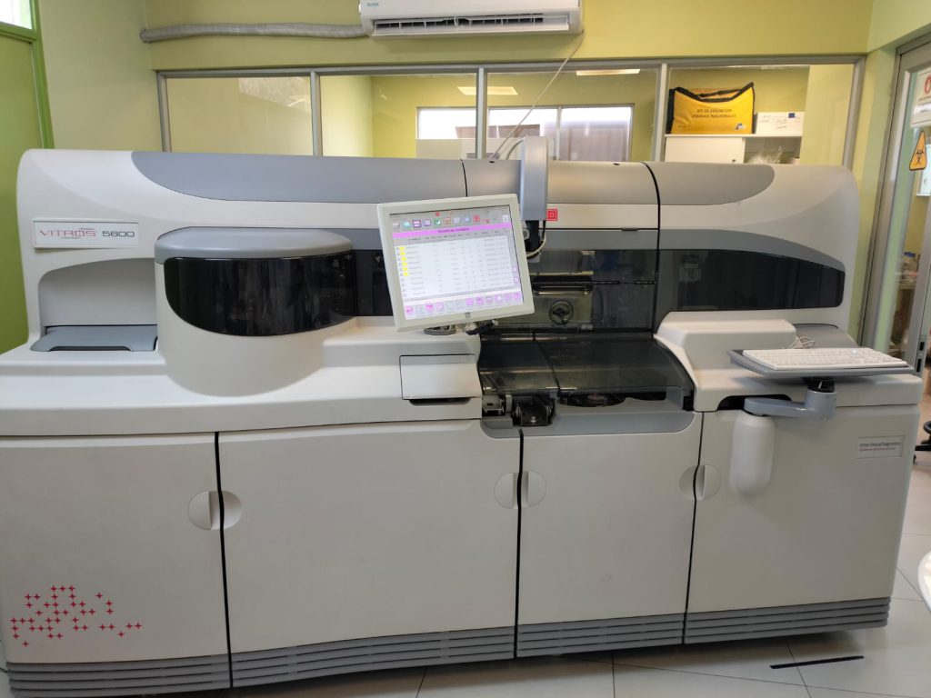El otro equipamiento adquirido se trata de Vida 3 que nos permite tener un equipo especializado en nuestro caso en hacer serología ( VIH, Hepatitis) y marcadores cardiacos. Con un costo de 45 millones nos permitirá poder tener una mejor herramienta diagnóstico a través de tecnología ELFA. (Combinación del método ELISA con una lectura final por fluorescencia)