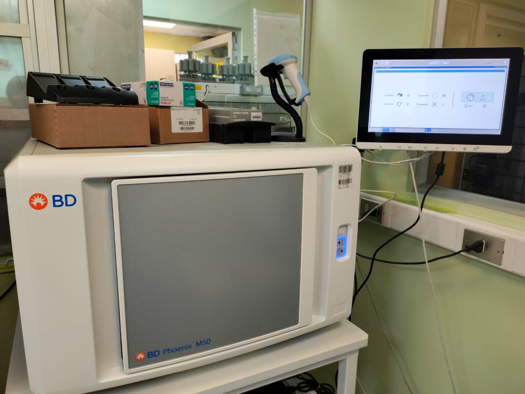 También fue adquirido el equipamiento Phoenix M50 que es un equipo automatizado para microbiología, que está diseñado para la identificación rápida y el antibiograma de bacterias importantes desde el punto de vista clínico. Con un costo de 90 millones este equipamiento aparte de poder tener resultados más confiables y más rápidos nos brindará resultados con CIM-real que significa, que nos va a dar la concentración mínima del antibiótico que el médico necesita (la dosis justa y precisa para eliminar esa bacteria X) y además se cuenta con un software EpiCenter que nos va ayudar a gestionar todo el tema microbiológico (información epidemiológica) del hospital, es decir saber cuáles son los principales agentes infecciosos que tenemos y a que medicamentos son resistentes por mencionar algunos ejemplos.