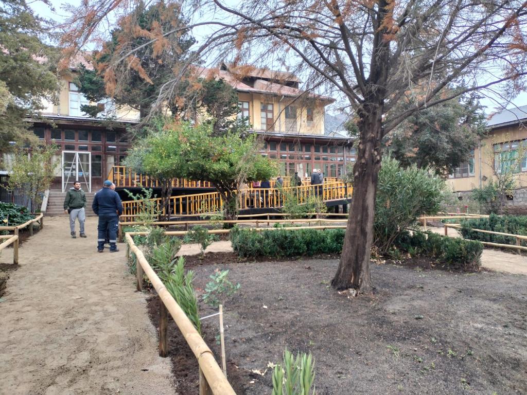 Este proyecto fue financiado por la Dirección del Servicio, bajo la modalidad de licitación, y contó con el permanente apoyo y supervisión de la Subdirección Administrativa a través del Departamento de Convenios, quienes se aseguraron de que se cumpliera rigurosamente con lo planificado, lo que implicó la apropiada limpieza del terreno, los encuadres del área, definir los tipos de árboles, plantas, flores, entre otros detalles propios del paisajismo.