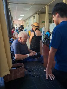 Durante la jornada, los jóvenes realizaron diversas acciones enfocadas en el bienestar de los pacientes, destacando el acompañamiento cercano a través de la escucha activa y la conversación, así como la generación de momentos de alegría mediante cantos y juegos grupales, los que contribuyeron a dinamizar y alegrar el ambiente. Además, prestaron servicio directo, apoyando en necesidades básicas y en el confort de los residentes.
