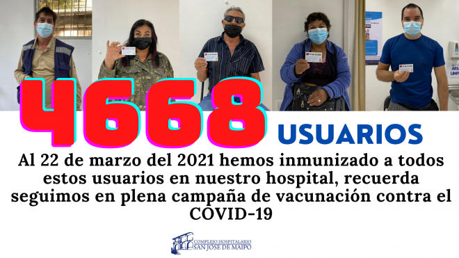 Ya llevamos 4668 usuarios vacunados en nuestro hospital al 22 de marzo, recuerda seguimos en campaña, te esperamos